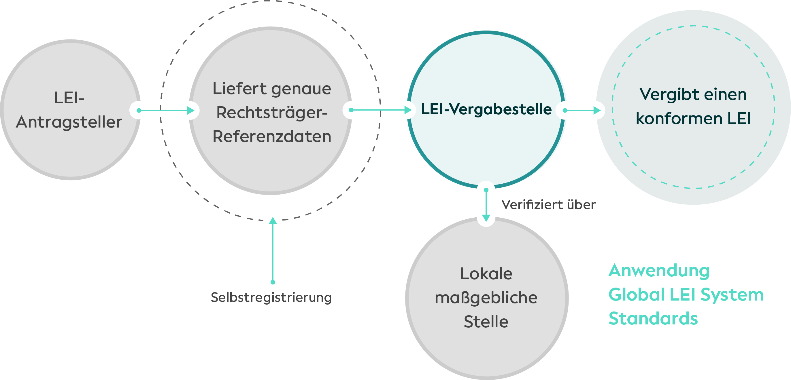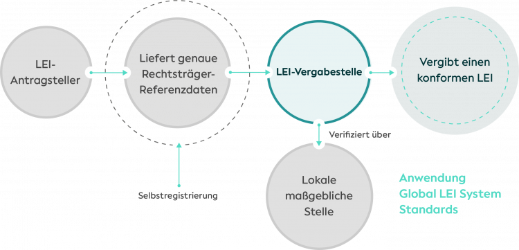 Die LEI-Vergabeorganisation muss die Referenzdaten bei der lokalen Registrierungsstelle – zum Beispiel einem nationalen Unternehmensregister – verifizieren und dann einen LEI vergeben, der dem LEI-Standard entspricht.