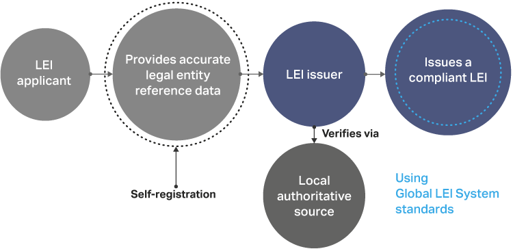 The LEI issuing organization must verify the LEI reference data with the local authoritative source – a national Business Register, for example – and issue an LEI compliant with the LEI standard.