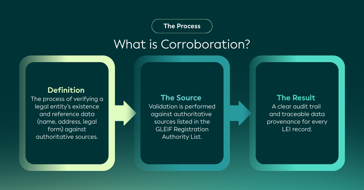 In a digital economy increasingly shaped by automation and AI, reliable and traceable entity data is essential. By systematically validating entity reference data against authoritative sources and clearly disclosing the level of validation applied, corroboration is a foundational mechanism that ensures transparency and data integrity across the Global LEI System. Ultimately, this transforms raw data into trusted data, and trusted data into opportunity.