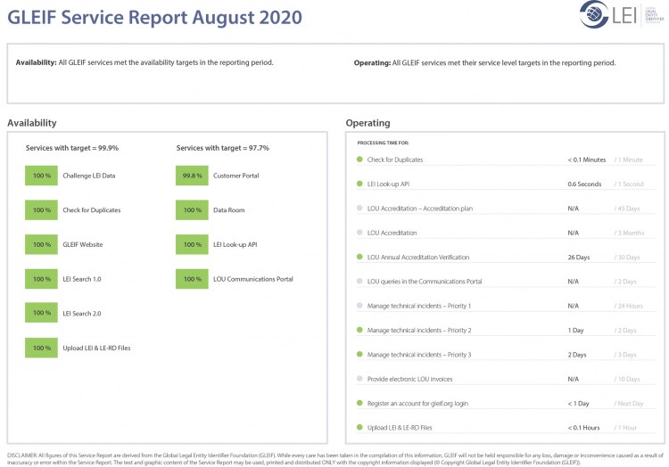 La Global Legal Entity Identifier Foundation (GLEIF) tiene un firme compromiso con garantizar la transparencia en la prestación de los servicios que ofrece. Por tanto, ofrecemos la posibilidad de descargar informes de servicio mensuales que evalúan el rendimiento general de la GLEIF.