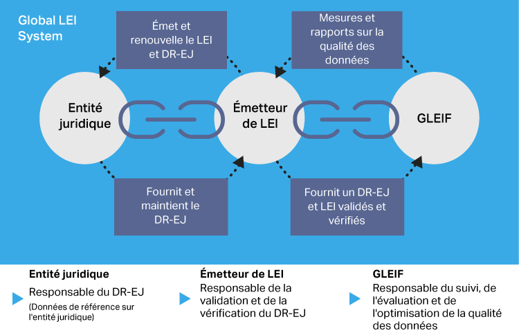 Le LEI est connecté à des informations de référence clés permettant d'identifier de façon claire et unique des entités juridiques participant à des transactions financières. Les données de référence fournissent des informations sur une entité juridique identifiée par un LEI. Pour résumer, la base de données de LEI accessible au public peut être considérée comme un répertoire mondial améliorant considérablement la transparence sur les marchés financiers. La capacité de la base de données à atteindre son objectif dépend de la disponibilité de données sûres, ouvertes et fiables.