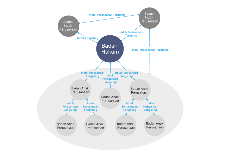 Jika induk badan hukum langsung dan / atau utama dari suatu pendaftar LEI telah memperoleh LEI, maka prosedur berikut ini diberlakukan: Badan hukum anak perusahaan akan diwajibkan untuk menyediakan LEI dari induk badan hukum langsung dan utamanya kepada organisasi penerbit LEI. Berkas terpisah yang akan dipublikasikan di situs web GLEIF yang menyediakan informasi induk akan berisi informasi LEI dari badan hukum anak perusahaan serta LEI dari induk badan hukum langsung dan utama.