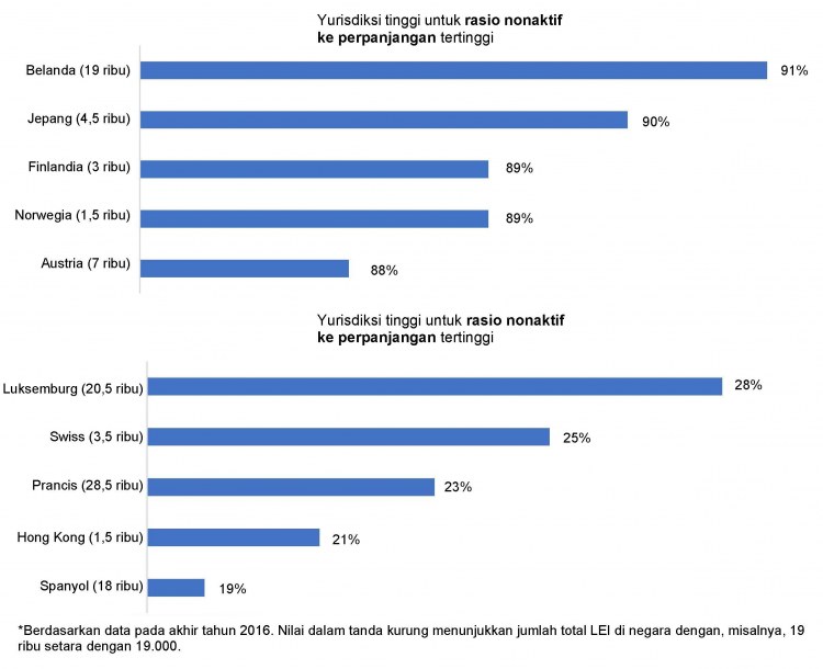 Rasio nonaktif ke perpanjangan: Ini merupakan rasio LEI yang nonaktif di akhir tahun 2015, tetapi diperpanjang di tahun 2016. Dalam hal ini, badan hukum memperpanjang LEI mereka hanya setelah tanggal perpanjangan yang disepakati sebelumnya.