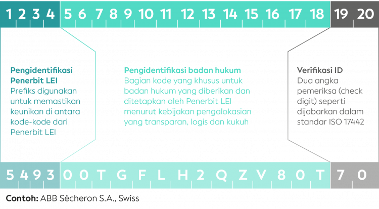 - Karakter 1-4: Prefiks digunakan untuk memastikan keunikan di antara kode-kode dari penerbit LEI (Satuan Operator Lokal atau LOU).