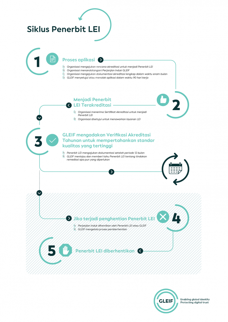 Baca lebih lanjut tentang akreditasi GLEIF untuk Penerbit LEI termasuk berbagai tahapan siklus: