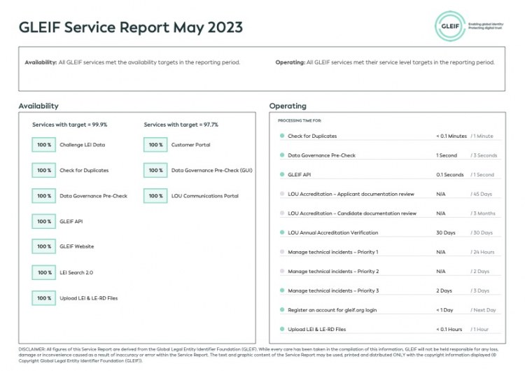 La Global Legal Entity Identifier Foundation (GLEIF) è impegnata ad assicurare trasparenza sulle sue prestazioni relativamente ai servizi offerti dalla GLEIF. Pertanto rendiamo disponibili per il download i rapporti mensili sui servizi che valutano le prestazioni complessive della GLEIF.