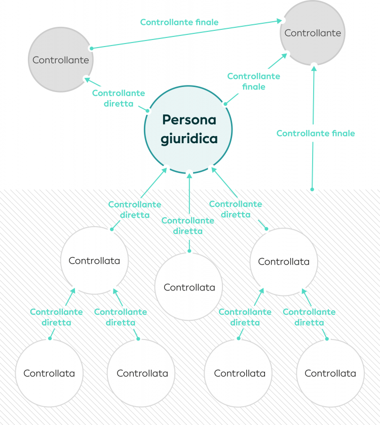 Se le controllanti dirette e/o finali di un richiedente LEI hanno ottenuto un codice LEI, quest'ultimo viene pubblicato insieme alla registrazione di dati associati ai codici LEI della controllata. Parimenti, la registrazione di dati associati ai codici LEI di un’organizzazione che sia la controllante diretta o finale di un’altra organizzazione che ha ottenuto un codice LEI riporterà il LEI della/e controllata/e.