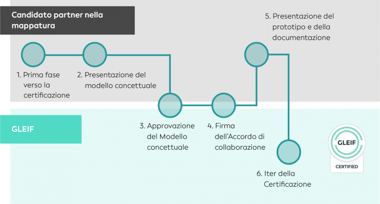 Il partner di mappatura che intende ottenere la certificazione documenta la natura e l'entità delle metodologie e/o dei processi di mappatura. Ciò permette alla GLEIF di revisionare processi e procedure, convalidare i dati campione del partner di mappatura e decidere se questi soddisfano o superano i criteri di accuratezza e qualità predeterminati dalla GLEIF. In caso affermativo, la certificazione della GLEIF viene confermata.
