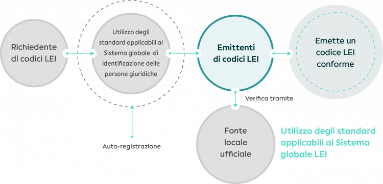 L’organizzazione che emette codici LEI deve verificare i dati presso l’Autorità di registrazione locale, ad esempio un Registro nazionale delle imprese, ed emettere un codice LEI conforme allo Standard in materia di codici LEI.