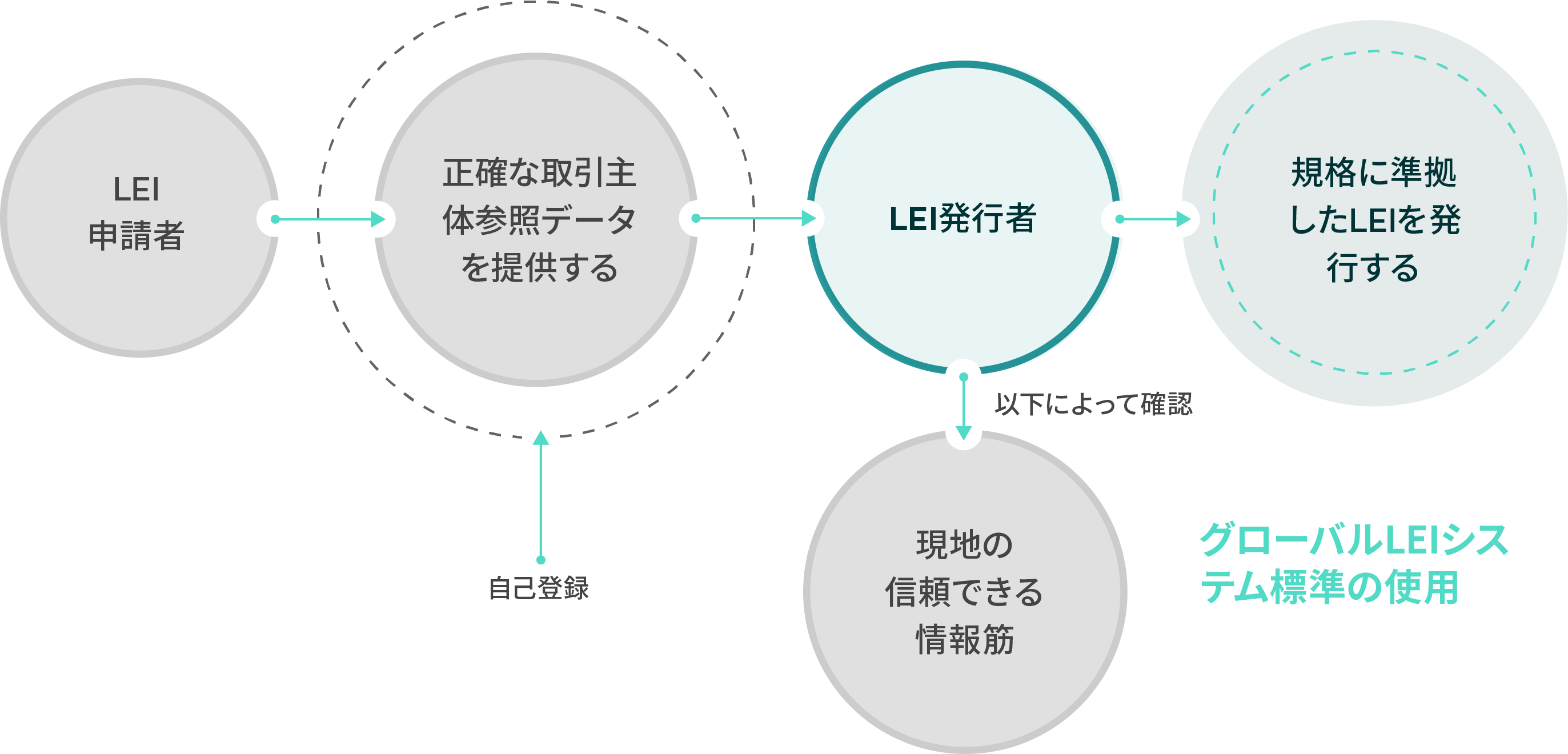 LEI発行組織は、現地の登録当局 (国の商業登記所など)による参照データの確認を経て、LEI基準に適合するLEIを発行する必要があります。
