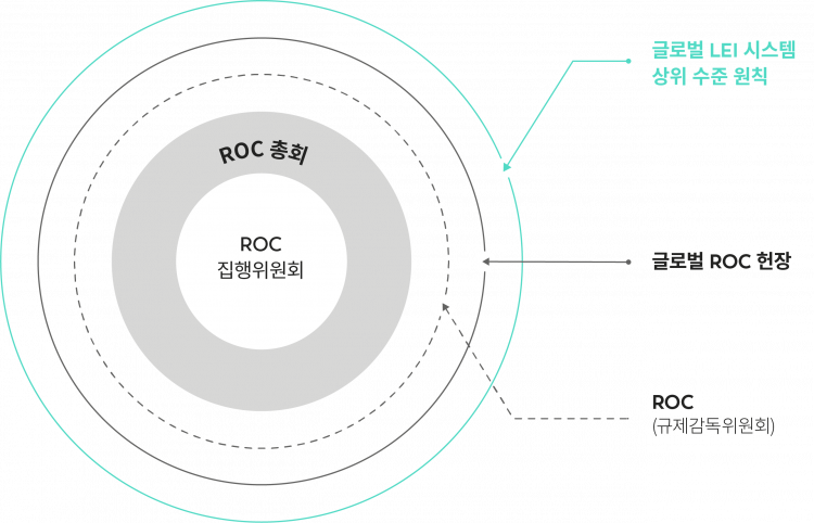 LEI 규제감독위원회(LEI ROC)는 전세계 공공기관의 모임으로 구성되어있으며, 세계 법인 식별 프레임워크인 글로벌 LEI 시스템을 조정하고 감독하기 위해 2013년 1월에 설립되었습니다. Global Legal Entity Identifier Foundation(GLEIF)의 감독 기관으로서, LEI ROC는 GLEIF가 글로벌 LEI 시스템의 원칙을 준수하도록 보장합니다.