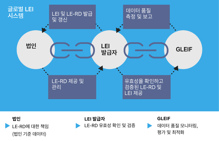 LEI는 금융 거래에 참가하는 법인을 뚜렷하고 고유하게 식별하는 주요 기준 정보에 연결해줍니다. 기준데이터는 LEI로 식별 가능한 법인 정보를 제공합니다. 즉, 공개된 LEI 데이터 풀은 금융시장의 투명성을 크게 향상시킬 수 있는 글로벌 디렉토리로 간주할 수 있습니다. 데이터 풀이 이 목표를 달성할 수 있는 능력은, 신뢰성이 높고 공개적인 데이터의 이용 여부에 달려 있습니다.