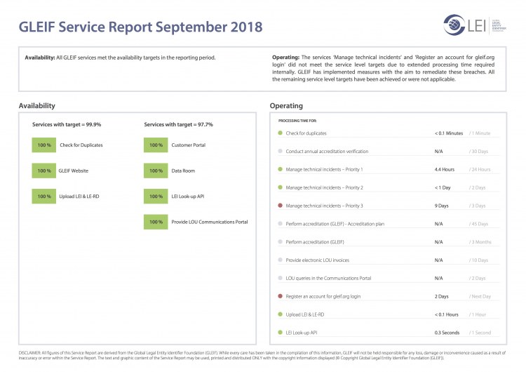 • Um resumo de como os serviços da GLEIF foram executados, incluindo violações e incidentes, se houver algum.