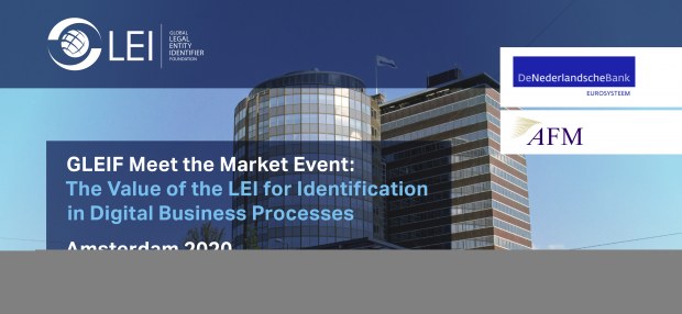 A Global Legal Entity Identifier Foundation (GLEIF), em cooperação com De Nederlandsche Bank (DNB) e Autoriteit Financiële Markten (AFM), organizou um evento Conheça o Mercado, "O valor do LEI para a identificação em processos comerciais digitais" na terça-feira, 4 de fevereiro de 2020.
