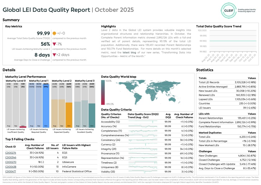 Фонд GLEIF предоставляет обзор своих проверок качества данных и сопутствующих стандартов