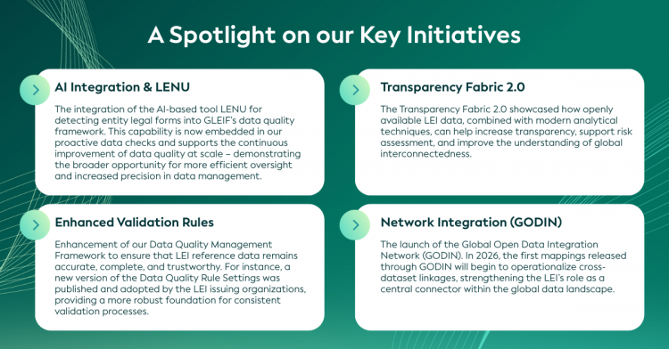 В 2026 году GLEIF будет работать в сотрудничестве и опираться на значительный импульс, полученный в прошлом году, чтобы использовать преобразующий потенциал ИИ, способствовать усилению взаимосвязанности между экосистемами данных и подтвердить нашу приверженность качеству данных и операционному совершенству: