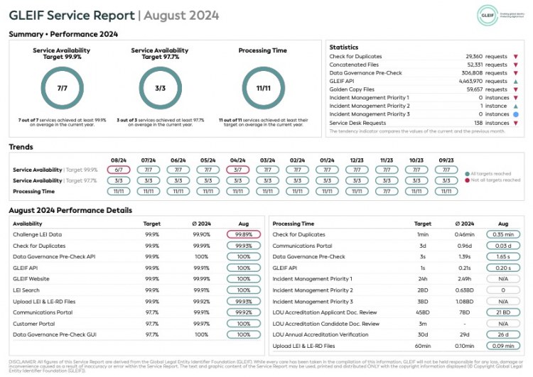 Global Legal Entity Identifier Foundation (GLEIF)致力于确保其在 GLEIF 所提供服务方面绩效的透明度。因此,我们提供每月服务报告下载,以评估 GLEIF 的整体表现。