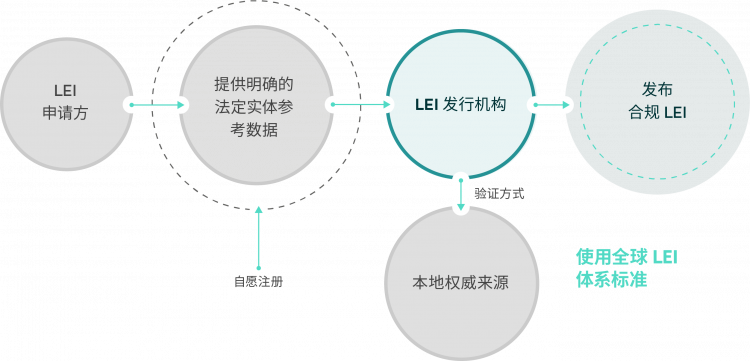 LEI 发放组织则必须向本地注册机构,如国家商业登记簿核实该参考数据的有效性,并依照 LEI 标准发放 LEI。